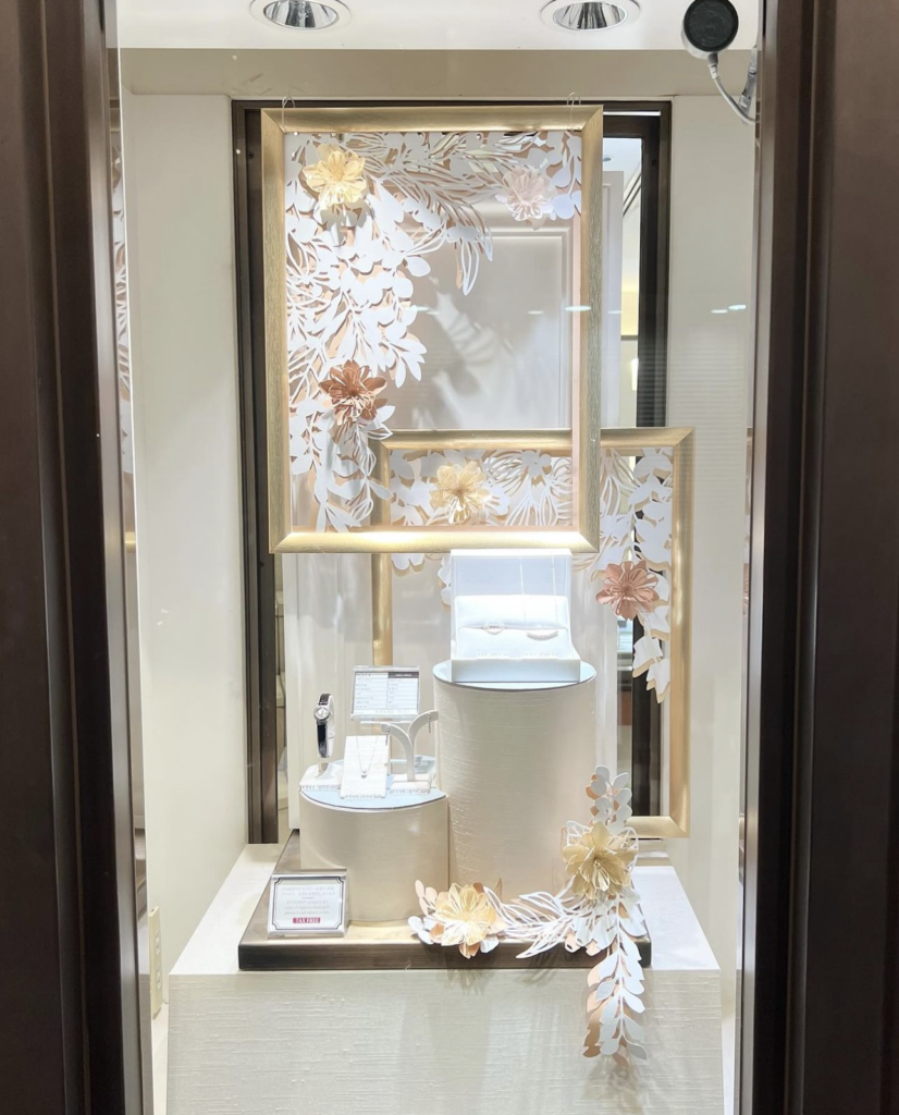 柔らかな春の訪れを店頭で感じていただけるイメージで仕上げていただきました!